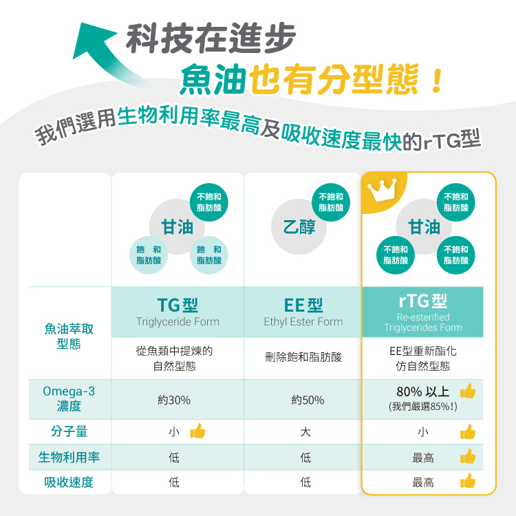★85% omega-3 高濃度+好吸收 rTG 型態